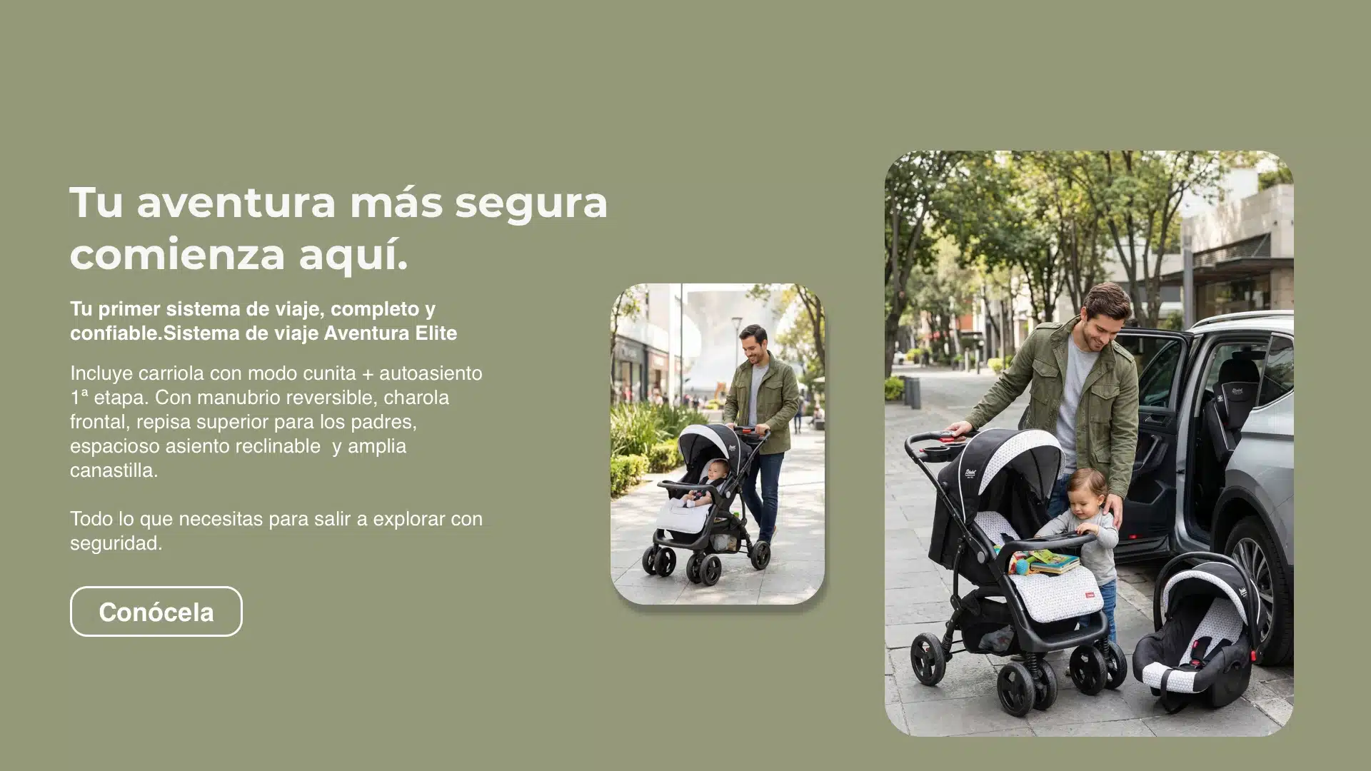 Nuestra carriola mas completa cuenta con bambineto y auto asiento es muy ligera por su estructura de aluminio y sus grandes llantas traseras la vuelven ideal para pasear en todo terreno.