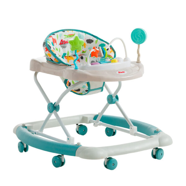 • Andadera 2 en 1 convertible a mecedora, se adapta a la estatura del bebé con 3 diferentes ajustes de altura con seguro anti-plegado accidental.