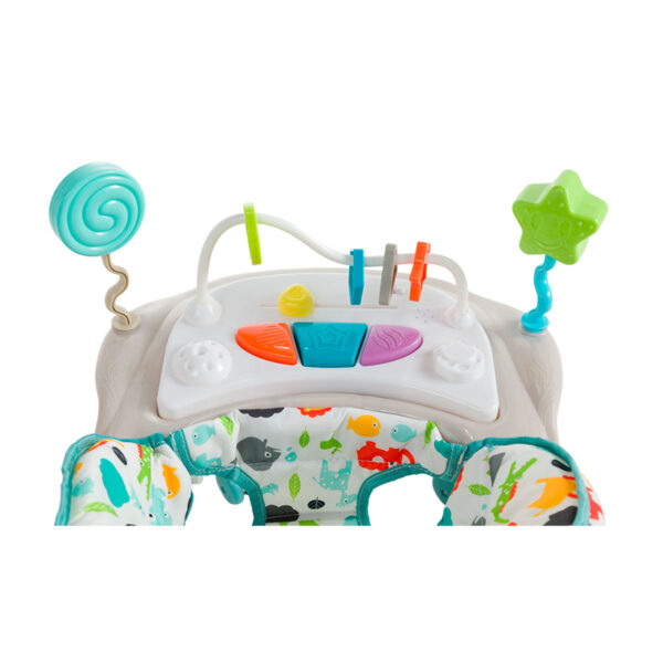 • Incluye juguetero electrónico desmontable con sonido que favorece el desarrollo de las capacidades visuales, auditivas y de la coordinación motora de tu bebé.