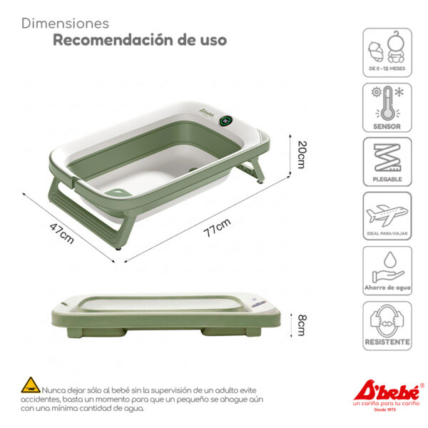 Su sistema de plegado ultra-compacto permite guardarla en cualquier rincón o llevarla en la cajuela del coche sin esfuerzo. Además, eliminamos las adivinanzas: su sensor de temperatura inteligente te avisa con precisión si el agua es ideal para la piel de tu pequeño, garantizando un baño relajante y sin riesgos.