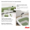 - Estabilidad Total: Patas con base antideslizante que evitan movimientos accidentales en superficies mojadas.